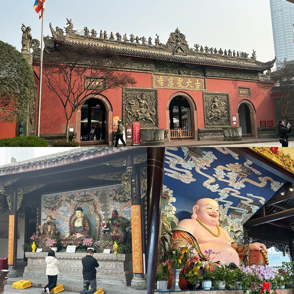 บริเวณเดียวกันคือ วัดต้าฉือ เป็นวัดเก่าแก่ใจกลางเมืองเฉิงตูที่มีเสน่ห์มาก ตั้งอยู่ใกล้ย่านช้อปปิ้งไท่กู่หลี่ ทำให้ที่นี่เป็นจุดที่ผสมความสงบของวัดโบราณเข้ากับความทันสมัยของเมืองได้อย่างลงตัว เดินออกจากโซนห้างหรูและคาเฟ่เพียงไม่นาน ก็จะเจอบรรยากาศวัดจีนเงียบ ๆ ที่เหมือนพาเราหลุดออกจากความวุ่นวายทันที มาแล้วอย่าลืมมาแวะขอพรกันนะ